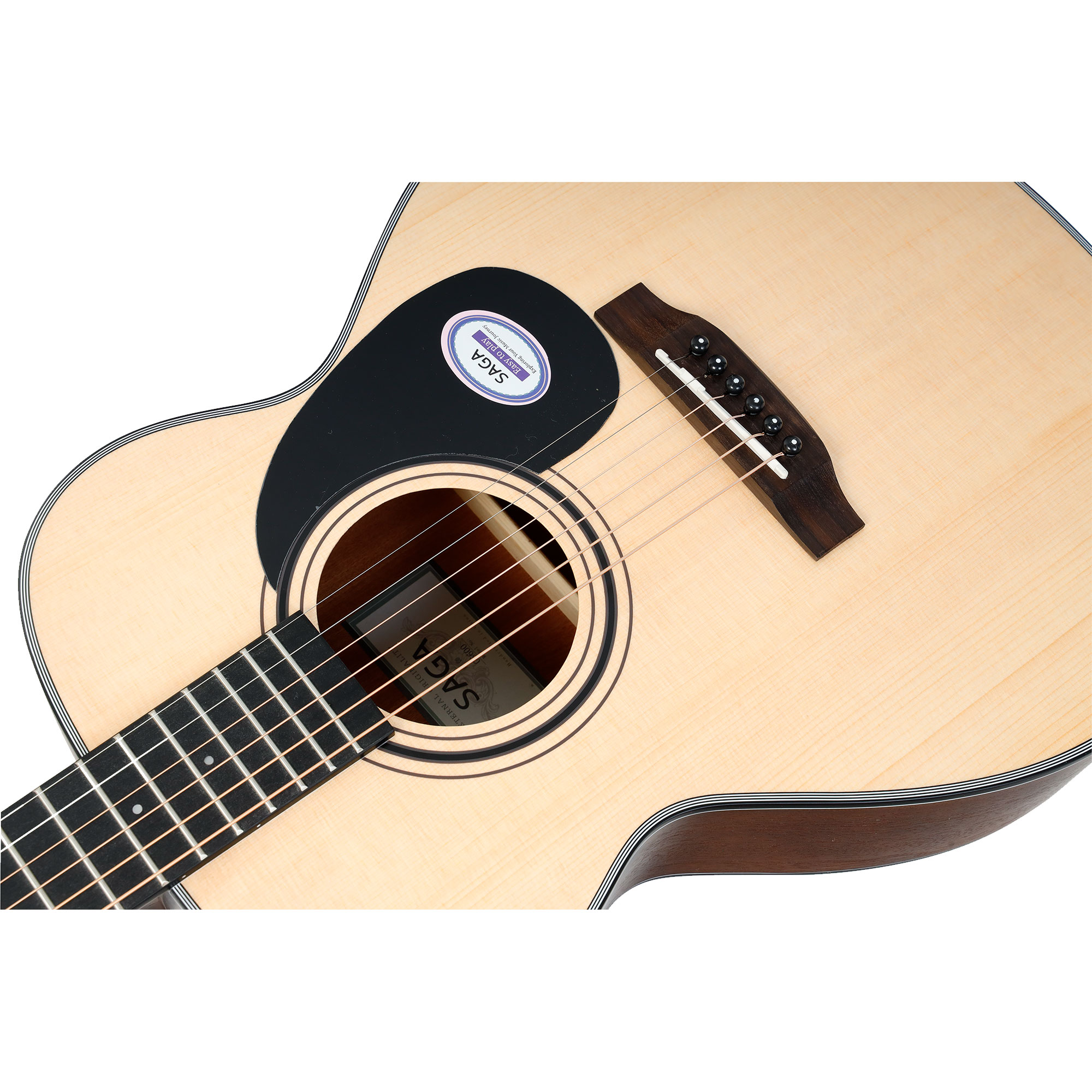 Richlite là vật liệu tổng hợp từ giấy thấm nhựa, có đặc tính giống gỗ tự nhiên nhưng không bị cong vênh hay biến dạng do nhiệt độ, đồng thời hạn chế trầy xước và đảm bảo chất lượng âm thanh ổn định. Mỗi cây đàn của SAGA đều được chế tác thủ công bởi nghệ nhân lành nghề, trải qua quy trình kiểm định nghiêm ngặt, mang đến sản phẩm hoàn thiện tỉ mỉ cả về thẩm mỹ lẫn âm thanh.