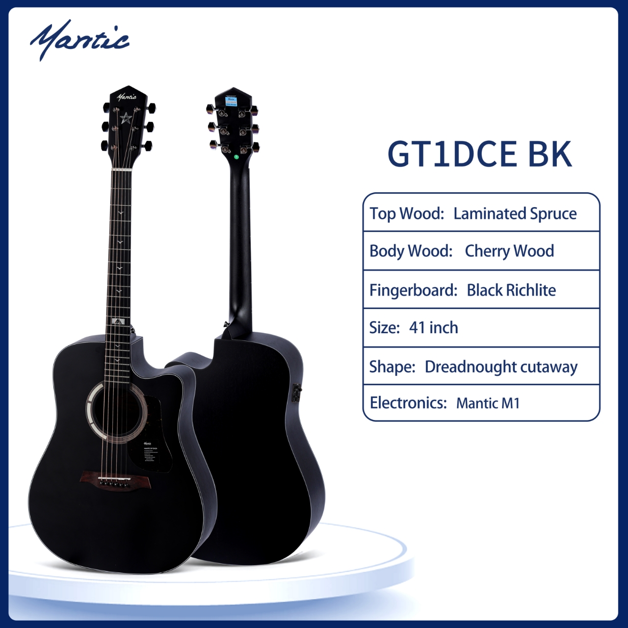 Đàn Guitar Acoustic Mantic GT1 DCEBK