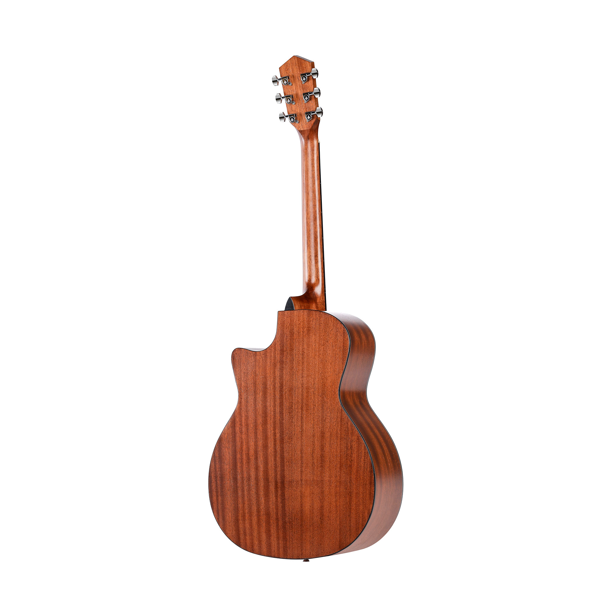 Phần lưng và hông của đàn được làm từ gỗ Mahogany, mang lại âm thanh ấm áp, dày và cân bằng – rất lý tưởng cho việc đệm hát hoặc chơi solo mộc.