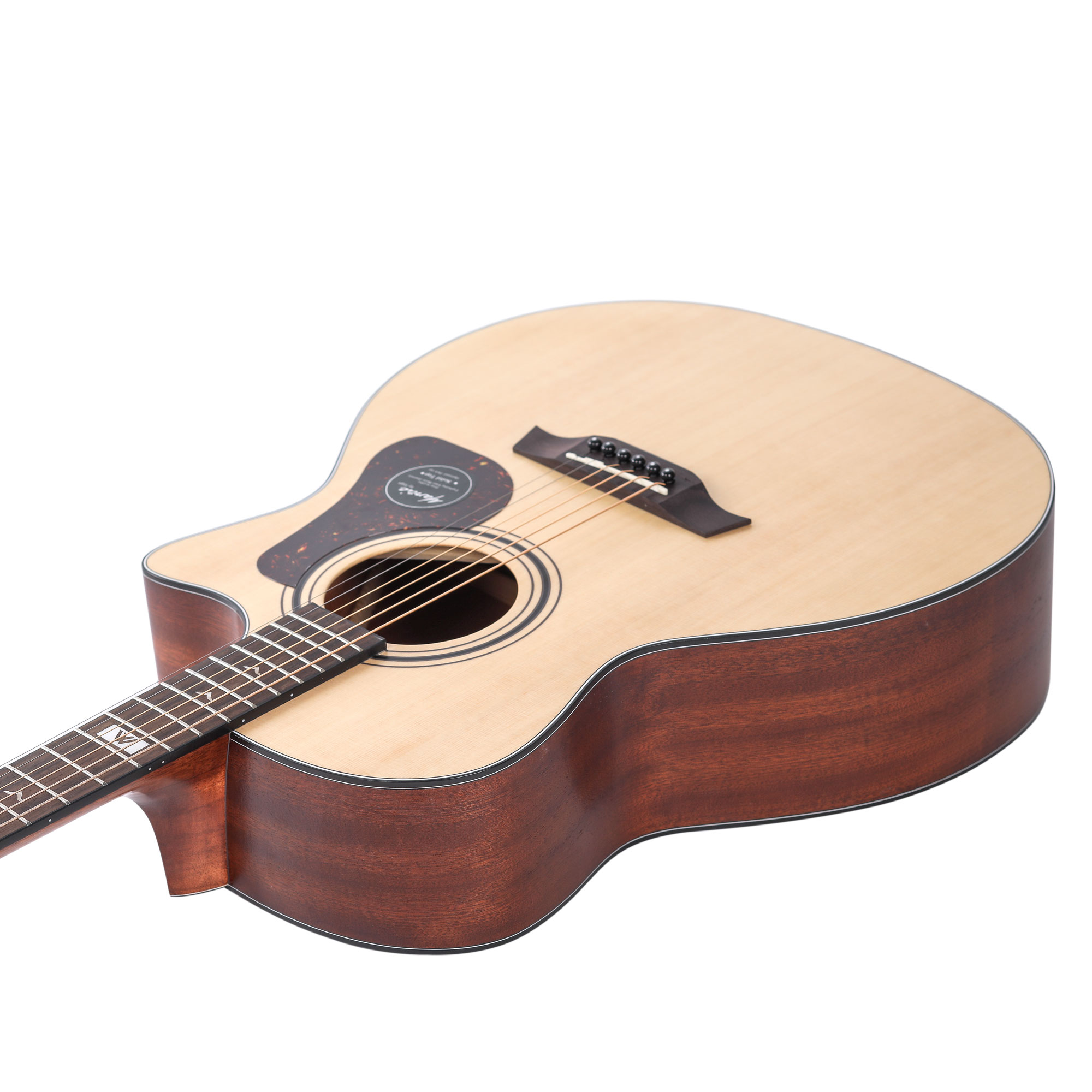 Với mặt top bằng gỗ thông Sitka nguyên khối (solid top), mẫu đàn mang lại âm thanh vang, sáng và cải thiện rõ nét theo thời gian chơi. Điều đáng chú ý là dù sở hữu cấu hình solid top – vốn thường xuất hiện ở các dòng đàn cao cấp – sản phẩm này vẫn giữ được mức giá rất mềm, dễ tiếp cận, mang đến giá trị vượt trội trong phân khúc.