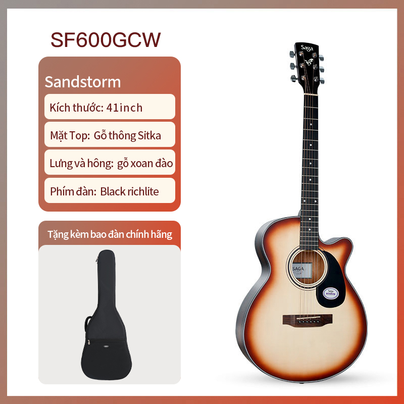 ới chất liệu gỗ chọn lọc, thiết kế nhỏ gọn và âm thanh chất lượng, SAGA SF600GCW là một cây đàn acoustic đáng cân nhắc cho người mới tập chơi. Mức giá hợp lý giúp model này trở thành lựa chọn tối ưu cho những ai muốn sở hữu một cây đàn tốt mà không cần đầu tư quá nhiều.