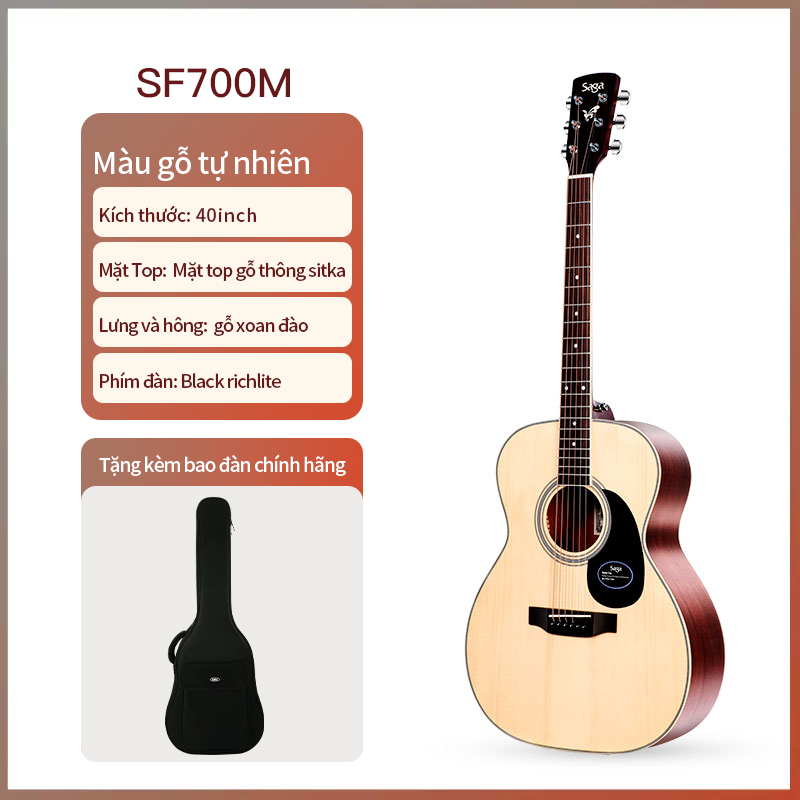 SF700M thuộc dòng SAGA 700 Series - mẫu đàn bán chạy nhất, được ra mắt hơn 10 năm. Sử dụng vật liệu và công nghệ cao cấp, với mặt Top được làm từ gỗ nguyên tấm chất lượng giúp tăng độ cứng cáp, mang lại chất âm đầy đặn và nội lực, đây là đàn mà bạn nên sở hữu để có thể chơi lâu dài.