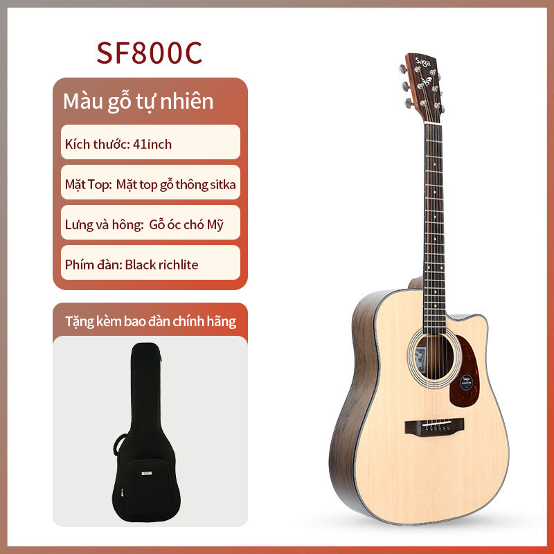 SF800C có dáng đàn Dreadnought cutaway, vừa giữ được âm thanh mạnh mẽ, trầm ấm đặc trưng của dáng Dreadnought, vừa mang lại sự linh hoạt cho người chơi khi cần bấm các nốt cao.