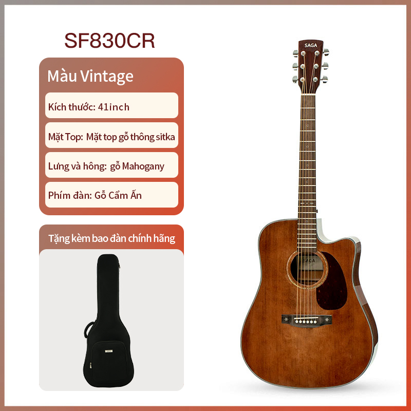 Với mặt Top từ gỗ thông nguyên khối tuyển chọn, Body của đàn được sơn bóng, SF830CR thuộc dòng SAGA 830 Series được nâng cấp đáng kể về chất liệu gỗ và thiết kế. Đây là dòng đáp ứng nhu cầu cao về thẩm mỹ, chất lượng âm thanh và sự tinh tế trong từng chi tiết. Được khuyến nghị cho người mới bắt đầu với ngân sách cao hơn, Từ 5,090,000VND.