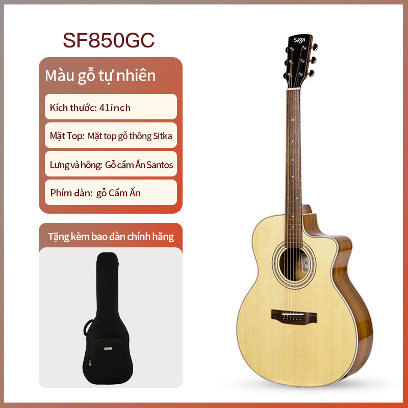 SAGA SF850 GC là mẫu guitar acoustic thuộc bộ sưu tập cao cấp của SAGA Guitar, được thiết kế dành cho những người chơi đòi hỏi chất lượng âm thanh vượt trội và ngoại hình sang trọng.